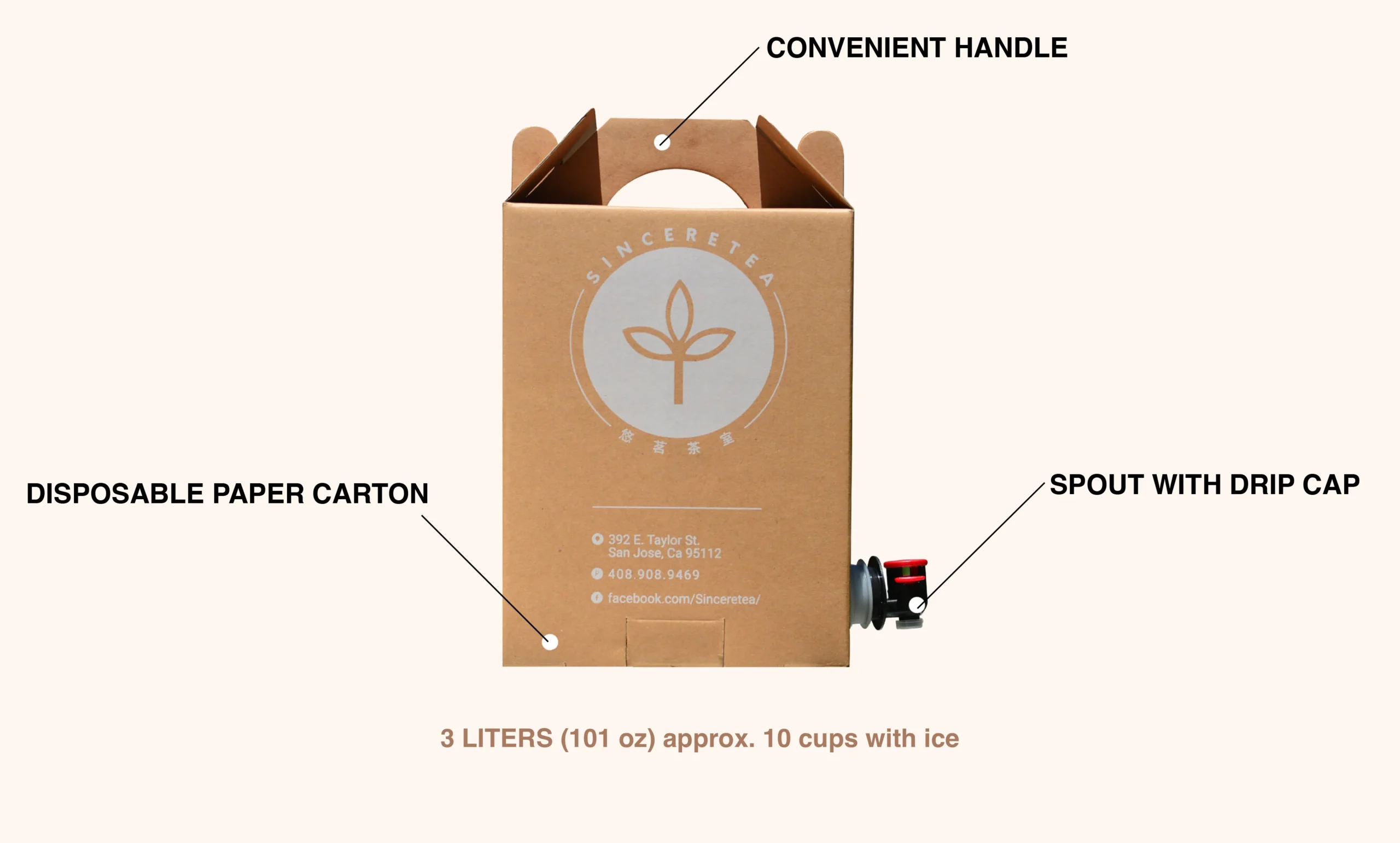 Need to order your favorite teas in bulk for your next event, gathering, or simply as a gift? Sincereretea has you covered! We offer our drinks in self-dispensing 3-liter cartons. Please allow us 24 hours ahead to make your order.